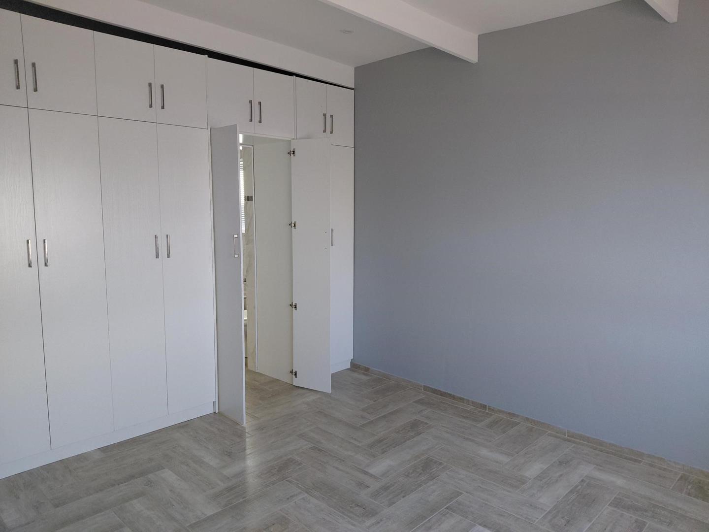 There are two spacious bedrooms with built-in cupboards. The main bedroom has an en-suite bathroom and ample storage space.