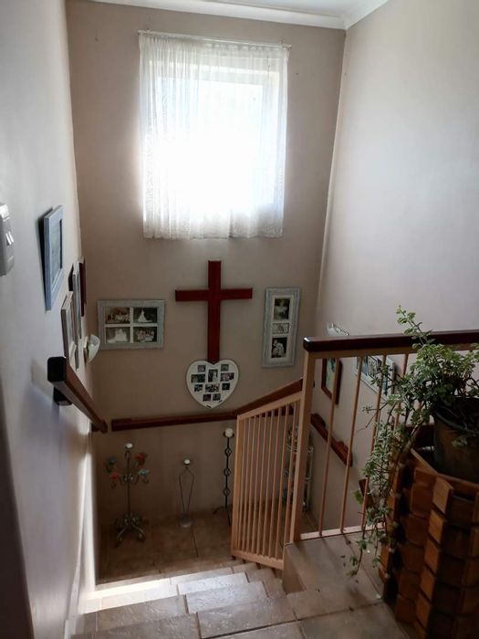 Embrace relaxed coastal family living in Sandbaai, minutes from Hermanus and beaches, with a private garden, upstairs braai patio overlooking mountains and sea, four bedrooms, double garage.