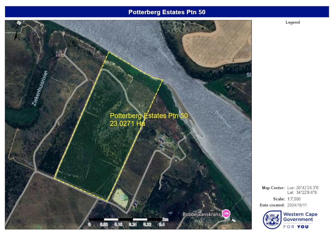 This rare 23ha pristine undeveloped property with 330m of river frontage is situated just a 14 km boat ride upriver from the Breede River mouth at Infanta, on a prime fishing section of the river.