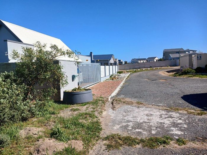 Coastal-living plot in Perlemoenbaai, 450m to the ocean and 400m to Gansbaai CBD, permanent mountain views and sea glimpse, approved double-storey plans and allowance for two units.