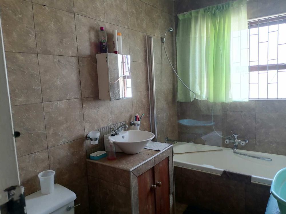 A fully enclosed 3 bedroom house with built- in cupboards, 2 bathrooms fully tiled, a spacious living room, dining room with kitchen and built- in cupboards. The double garage is an added bonus that can comfortably accommodate two cars and lots of storage space . This house needs a good cleanup and a splash of paint.There is an inactive jacuzzi that can be revived. This house is priced to go .