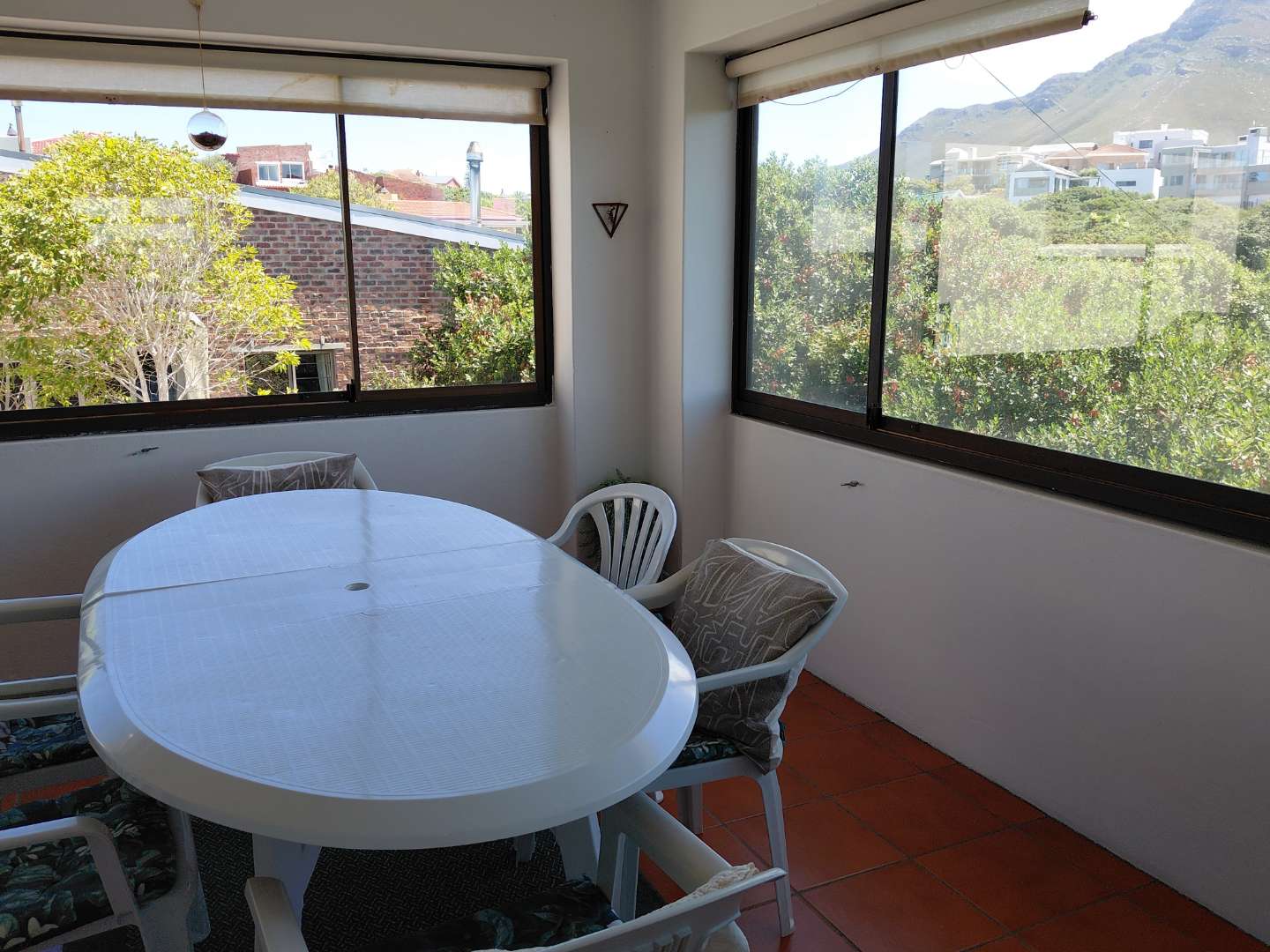 The enclosed back garden flows into a greenbelt area offering privacy and a beautiful mountain view.