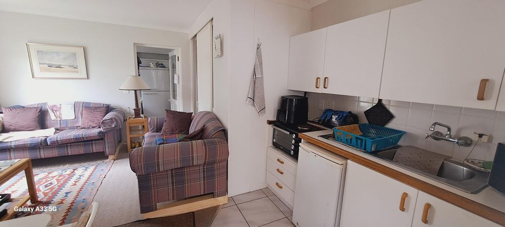 This neat, sunny and airy unit is ideally located close to the lock-up garage with remote controlled door. Enjoy a cup of coffee in your living area whilst overlooking the beautiful communal gardens of Fynbos Park. The flat is easy accessible with a wheel chair or even shop rider because of the large area outside the entrance door. The flat is fitted with a under counter fridge and two plate stove/oven for those who occasionally enjoy preparing their own food. Alternatively meals may be ordered and are delivered to the door free of charge.