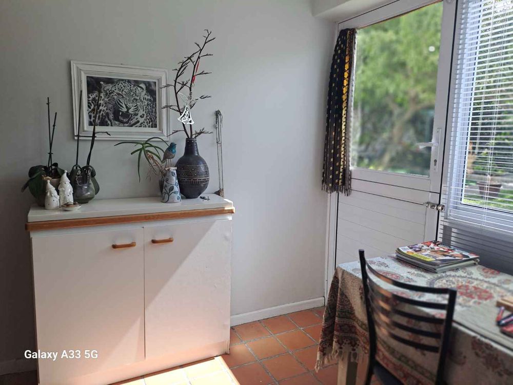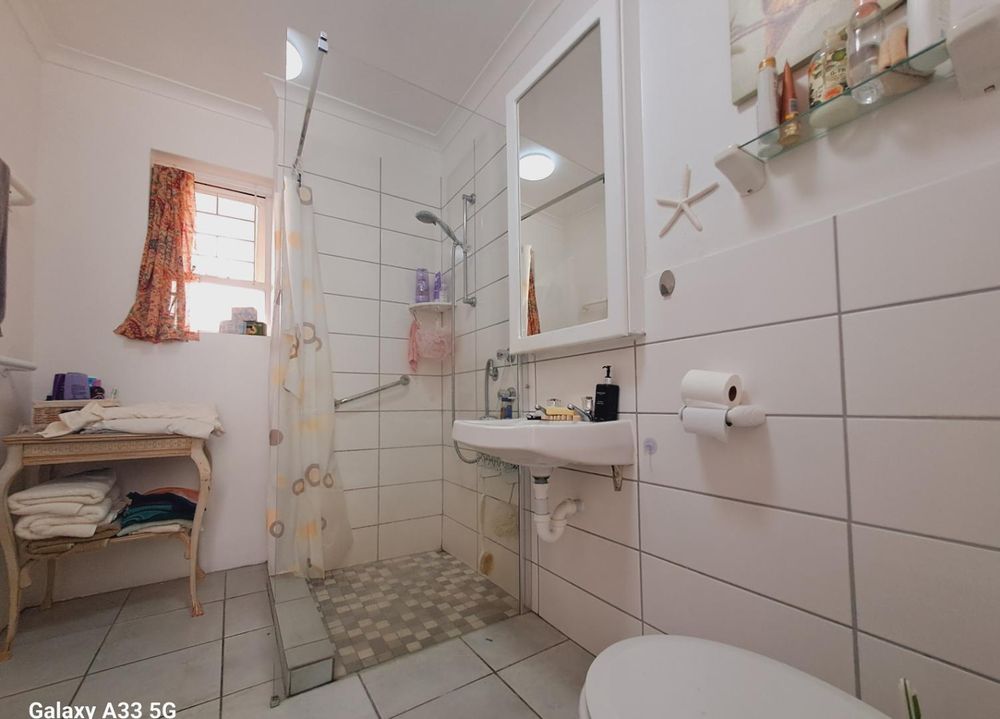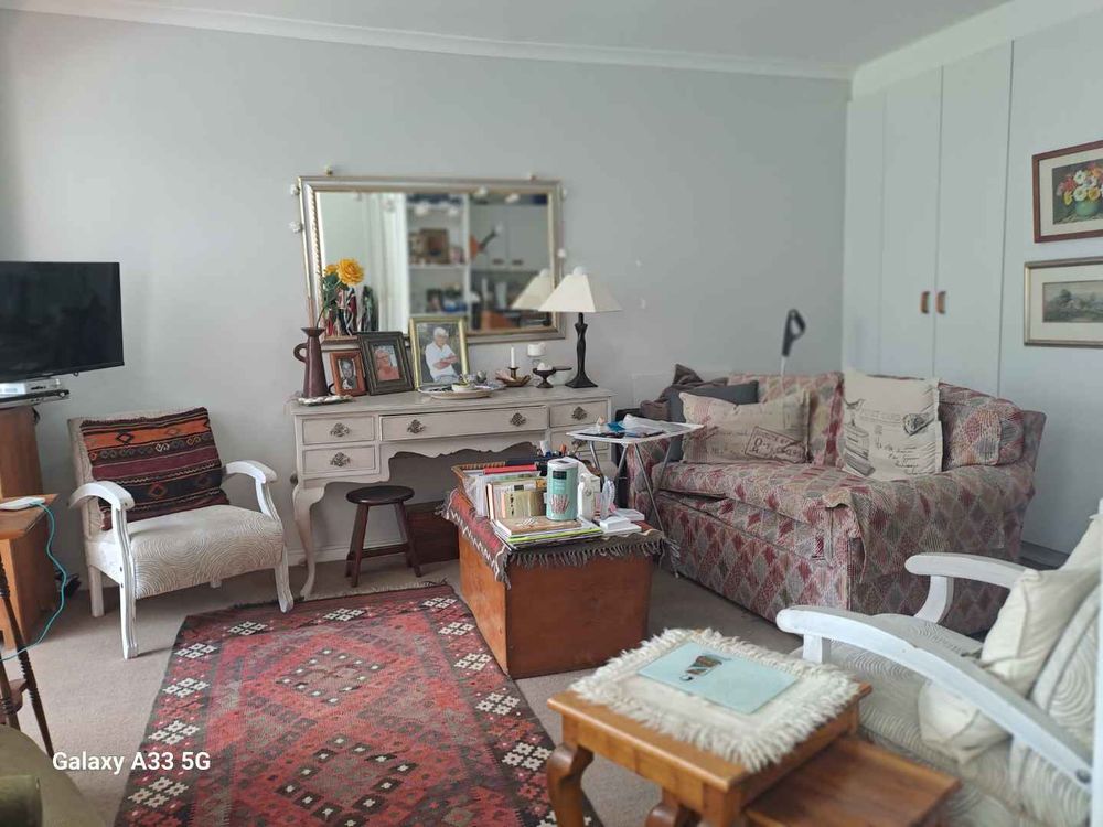 The living area is extended into the enclosed balcony filled with sunlight. The open plan kitchenette has ample cupboards and is equipped with a two-plate oven/stove and an undercounter fridge.The spacious bedroom accommodates a king size bed and is fitted with 4 cupboards and a dressing table. A sliding door adds extra space and flow to the bedroom. The en-suite bathroom offers a shower, toilet, basin. The lock-up garage is close by.