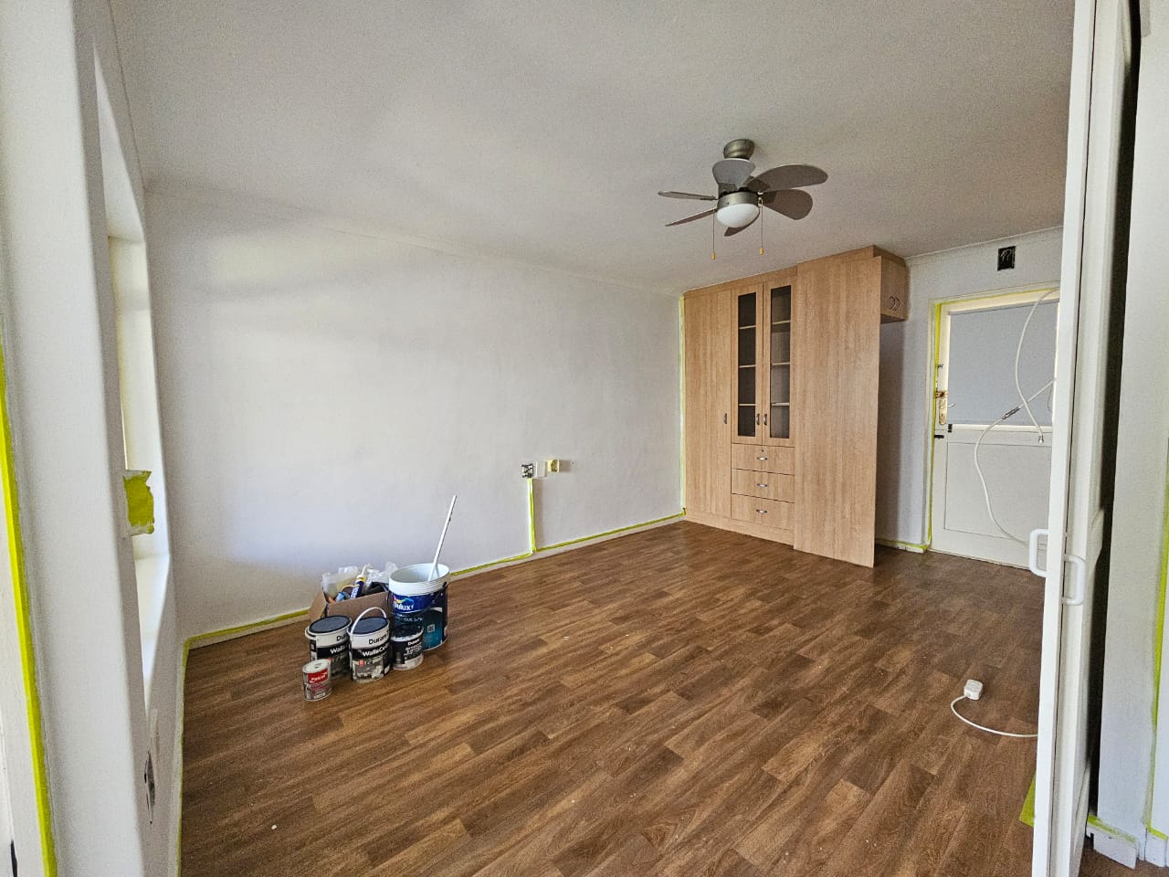 The apartment has been thoughtfully updated, featuring a newly renovated kitchen complete with a modern oven and two cooking plates. Contractors are currently giving the interior a fresh coat of paint, ready for you to make it your own. An added bonus is the small enclosed verandah, versatile enough to serve as a study, extra sleeping space, or a cozy sunroom.