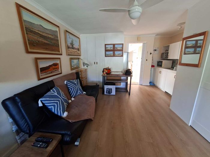 Embrace peaceful, accessible living with mountain views and lift access in Fynbos Park, steps from Medi Clinic. Enclosed balcony sunroom/study, wheelchair-friendly, newly renovated — one-bed, one-bath and garage.