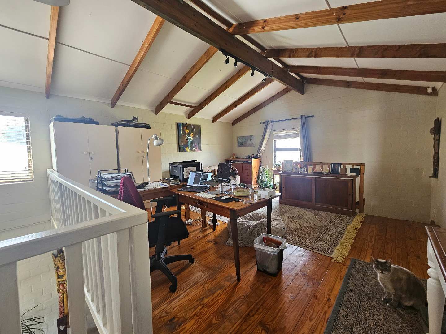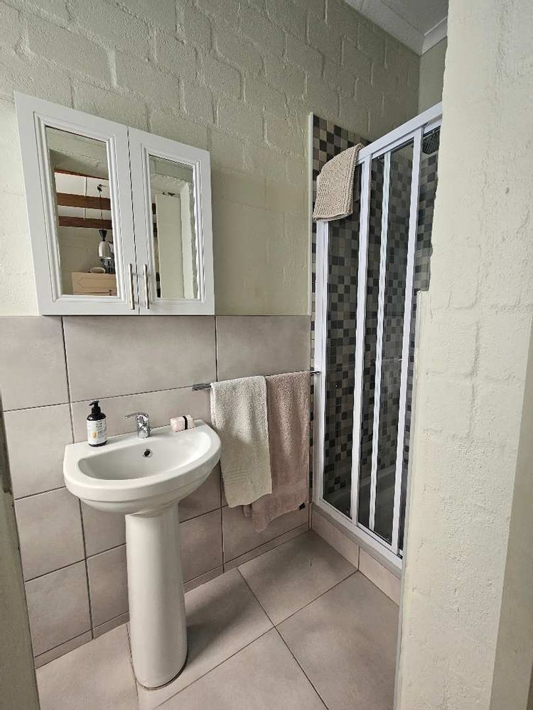 This spacious home is designed for comfort and style. The downstairs area features two generous bedrooms, one with an en-suite bathroom and the other with a convenient guest bathroom. The expansive kitchen is equipped with a modern gas hob, perfect for culinary enthusiasts. The indoor braai area seamlessly connects to the outdoors through stackable doors, leading you to a beautiful garden, pool, and deck area—ideal for relaxing or entertaining guests.