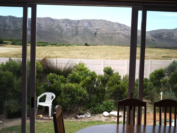Enjoy dual sea-and-mountain panoramas in De Kelders, just 100m from the cliffs — perfect for front-and-rear living areas to choose your view. 585 m² plot.