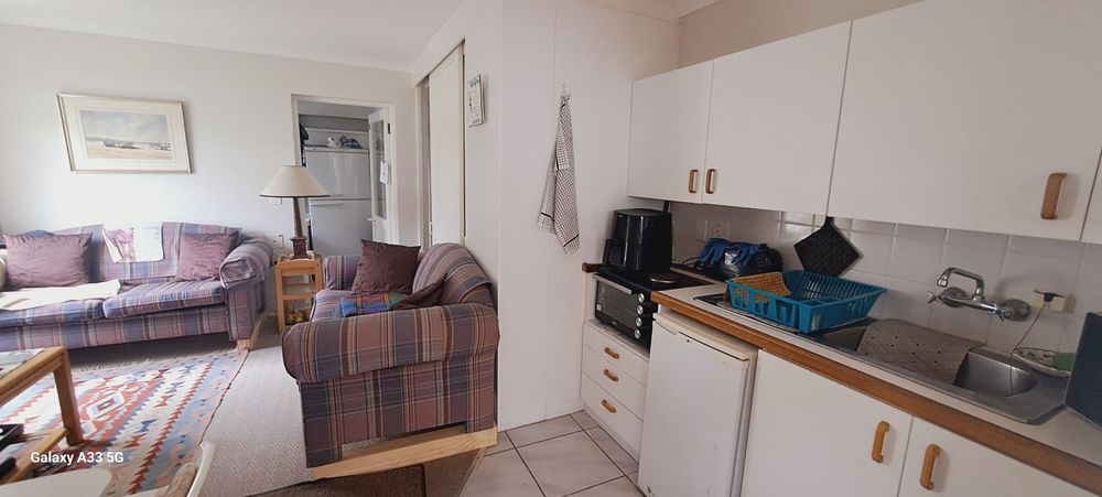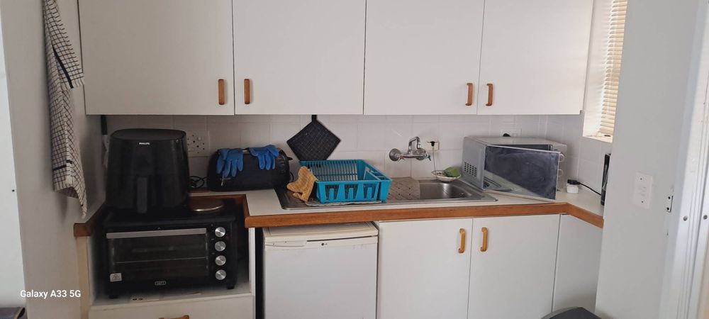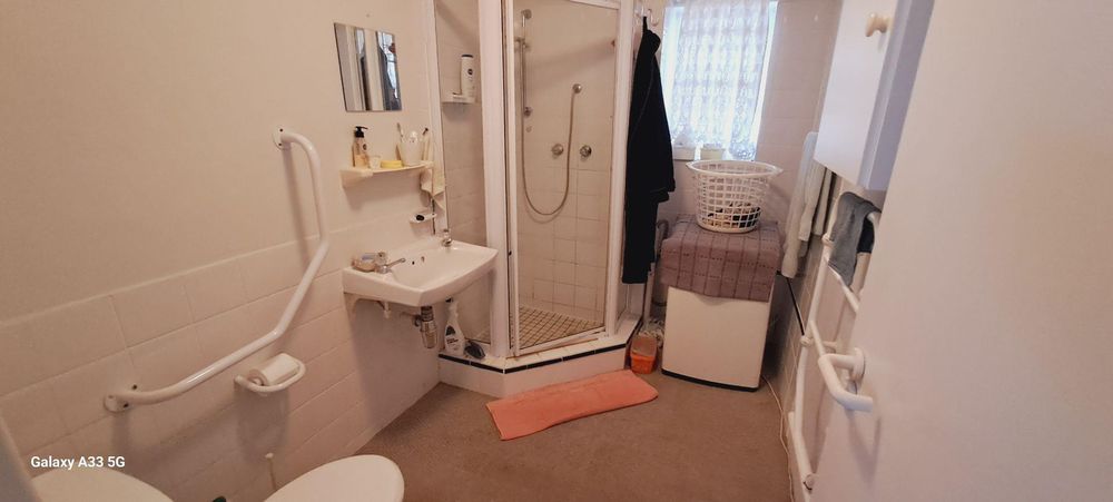 This neat, sunny and airy unit is ideally located close to the lock-up garage with remote controlled door. Enjoy a cup of coffee in your living area whilst overlooking the beautiful communal gardens of Fynbos Park. The flat is easy accessible with a wheel chair or even shop rider because of the large area outside the entrance door. The flat is fitted with a under counter fridge and two plate stove/oven for those who occasionally enjoy preparing their own food. Alternatively meals may be ordered and are delivered to the door free of charge.